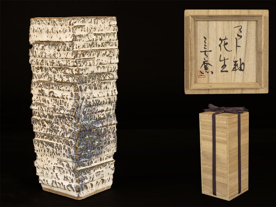 ●作家 マット釉 花生 壺 花瓶 共箱●拍卖