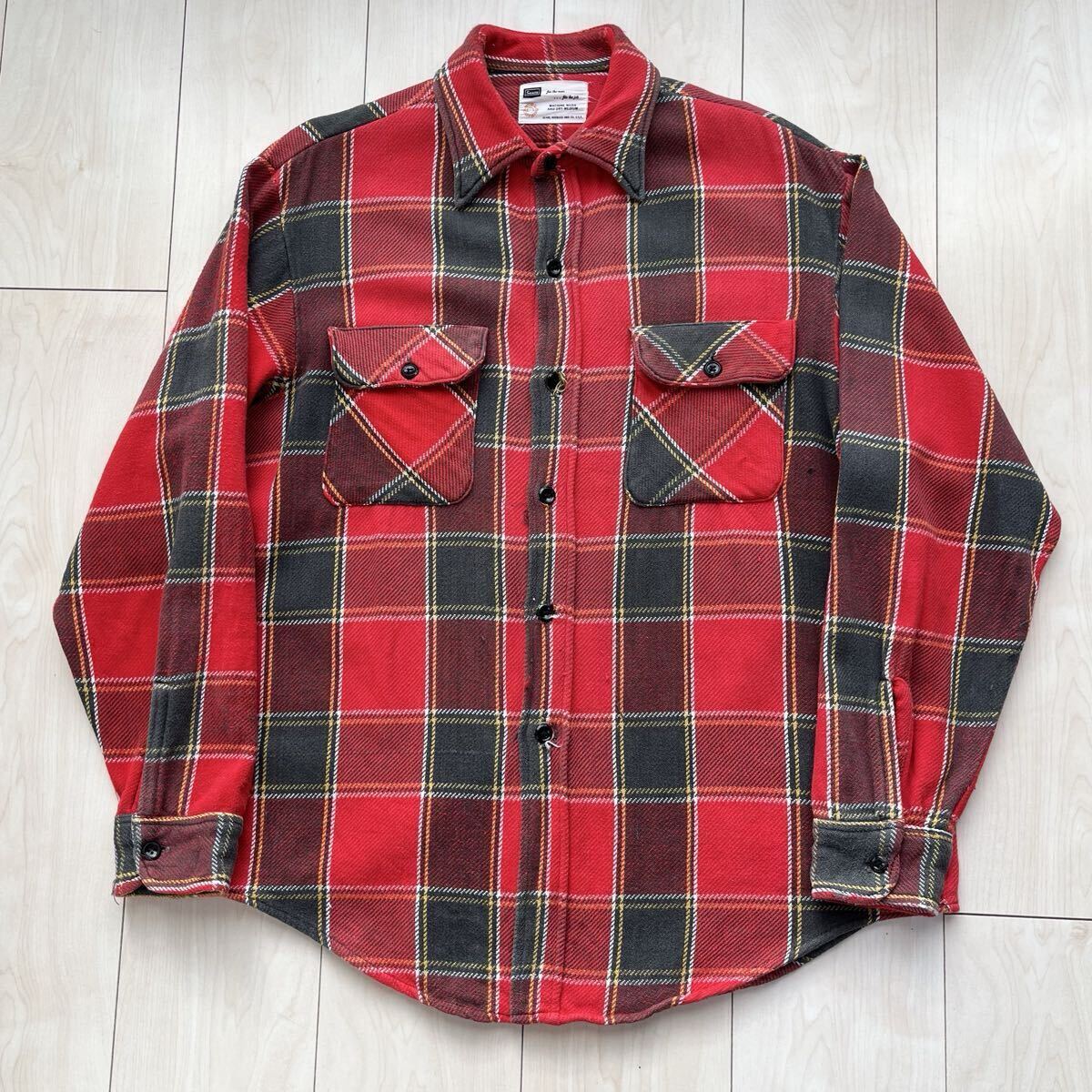 - 70s Sears シアーズ ヘビーネルシャツ チェック 赤M