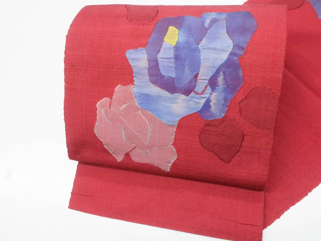 - 《古美術京松》【着物】 昭和レトロ 八寸名古屋帯 お太鼓柄 バラ文 紬織 kyo7b04-39