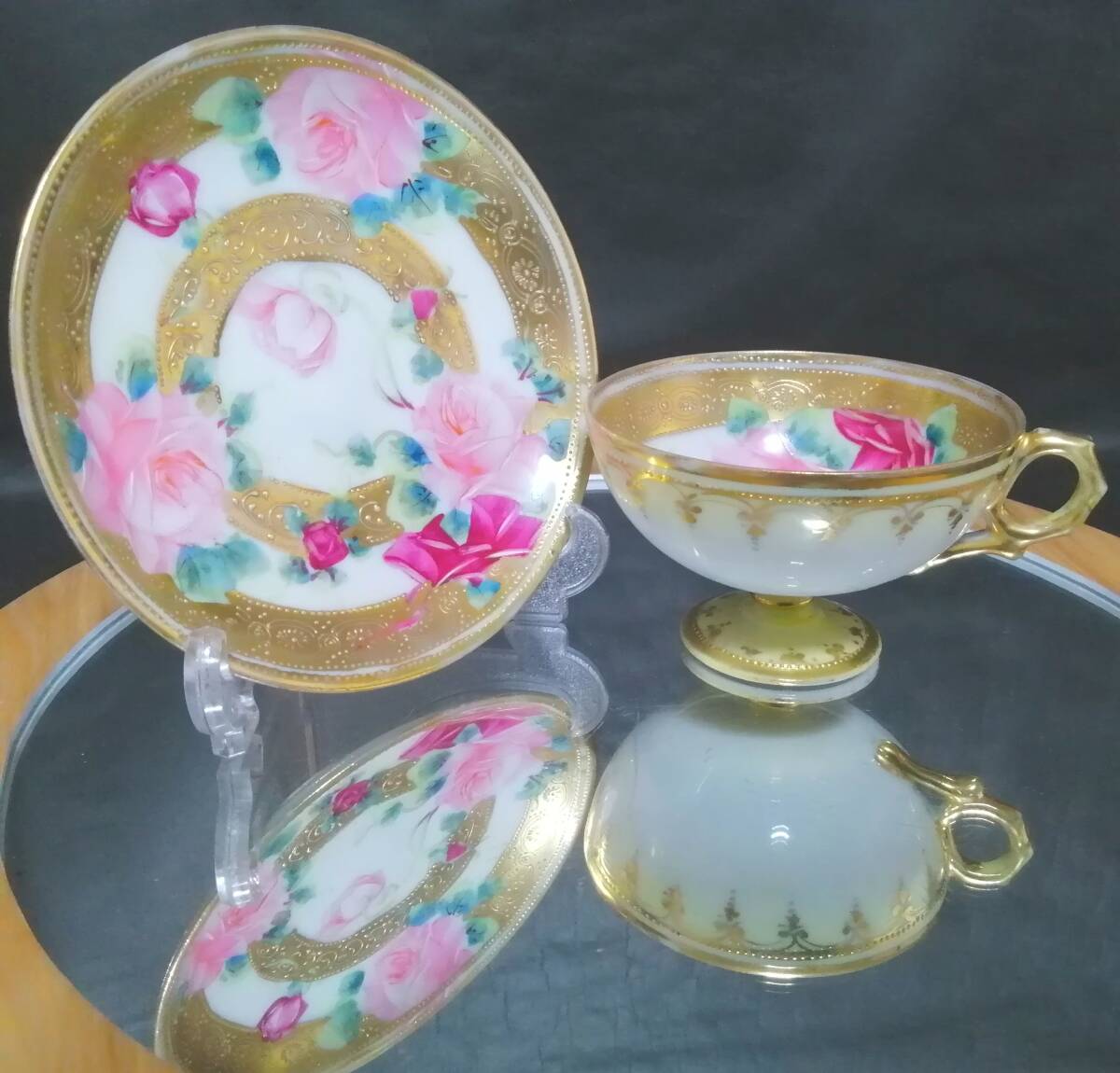 - オールドニッポン◆里帰り 金盛薔薇紋 ペディスティアル カップ&ソーサー 輸出向け