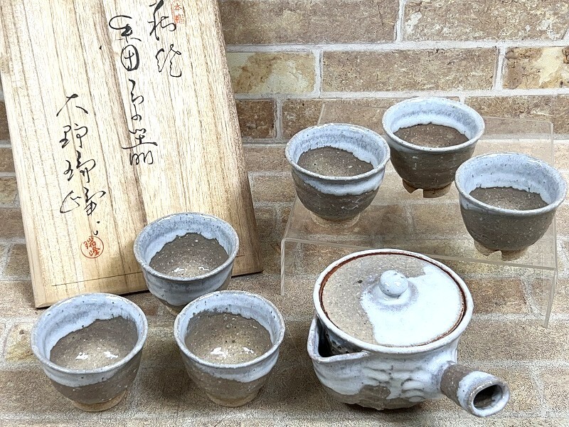 - 保管品! 萩焼 大野瑞峰 / 番茶器 急須 湯呑 6客 / 茶器揃 茶道具 共箱 【4323y2】