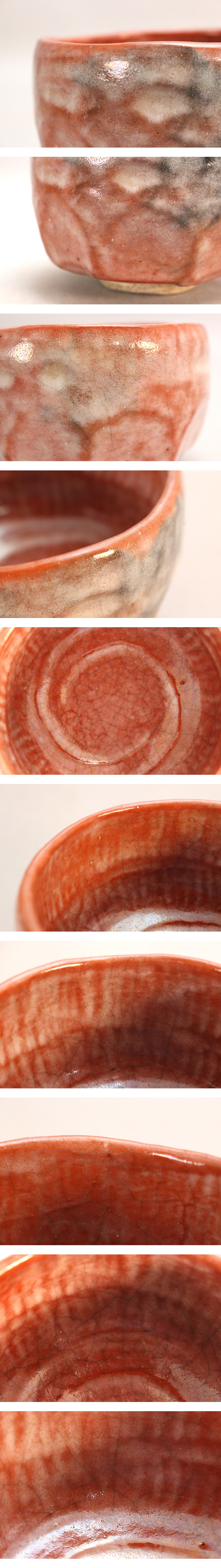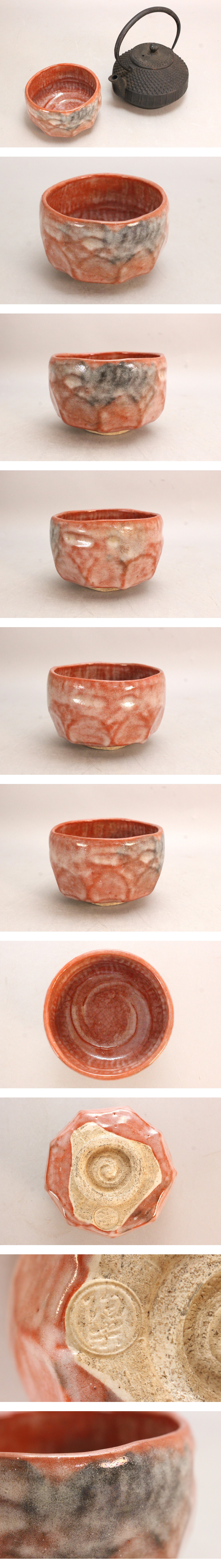 - [244180]高台寺窯 森里陶楽 赤楽茶碗 直径11.5cm 陶印有/南部 霰鉄瓶◆茶道具/茶器/陶磁器/鉄器/古美術/骨董/うぶ品