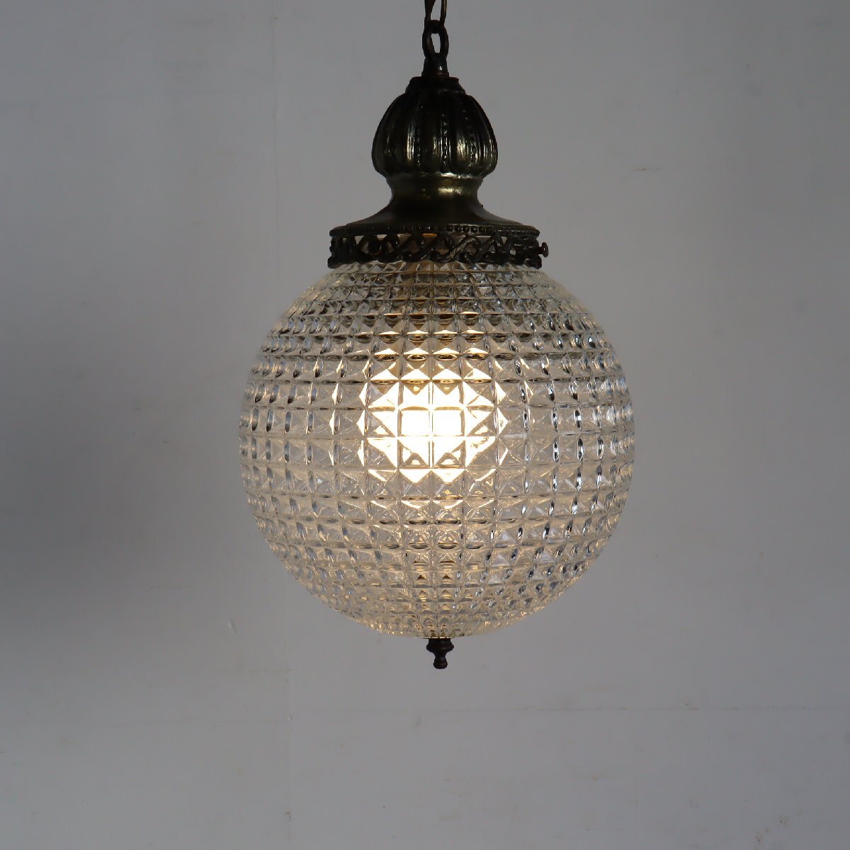 - 1950s ヴィンテージ カットガラス ペンダントランプ/アンティーク クリアガラス 吊り下げランプ 照明 シーリング#610-20-283-497
