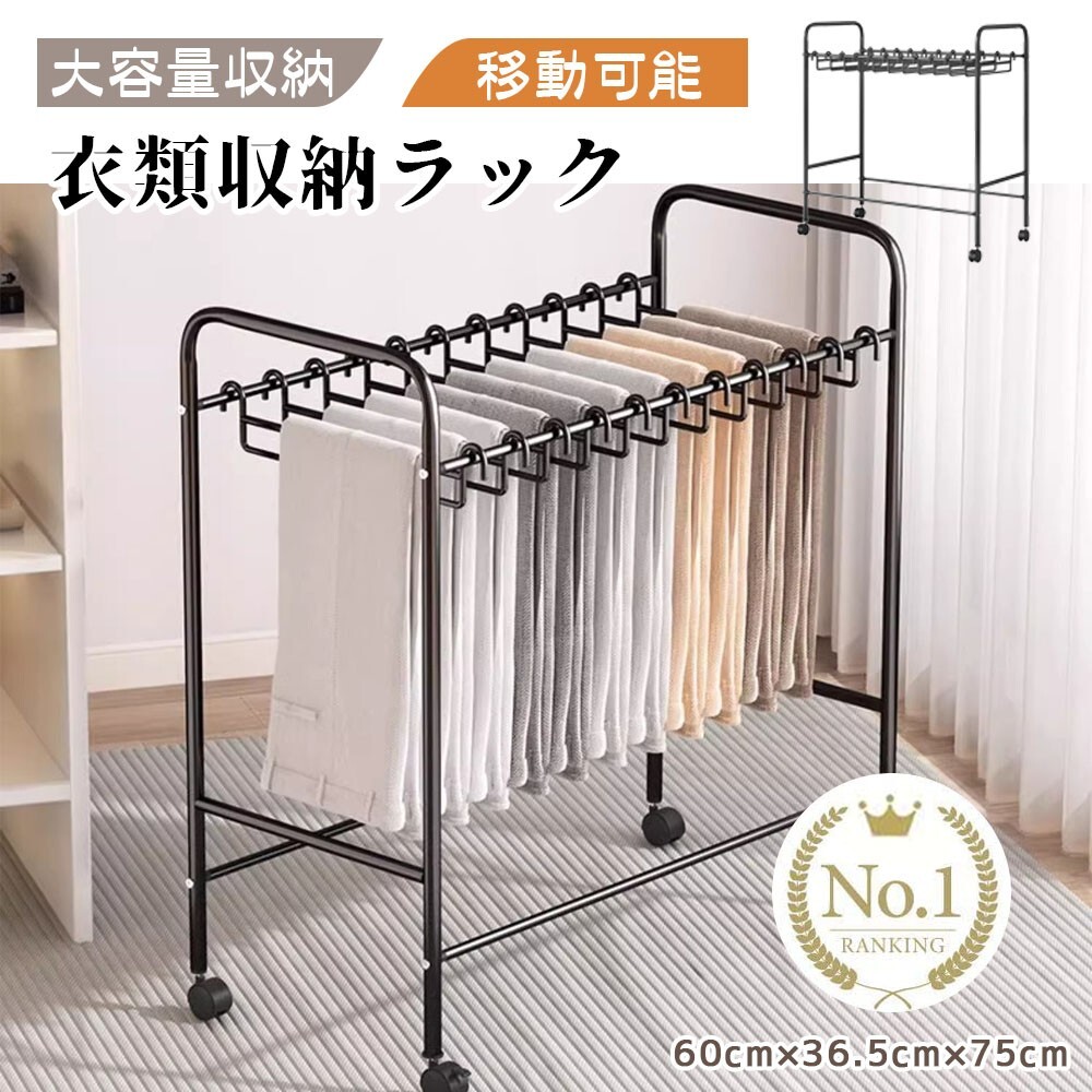 - ハンガーラック キャスター付き 衣類収納ラック 大容量 省スペース 防水 防錆 シングルタイプ ズボン掛け付き 組立簡単 WBGHS-01-C