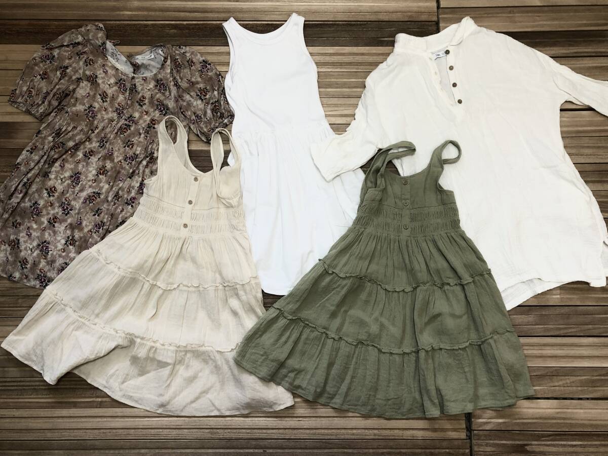 > 9Y 134cmZARA ワンピース5点セット ザラ 春夏秋 オシャレ 花柄 ギャザー Aライン シャツワンピース 無地