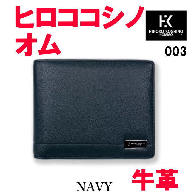 - ネイビー ヒロコ コシノ オム 003 リアルレザー牛革 本革 折財布