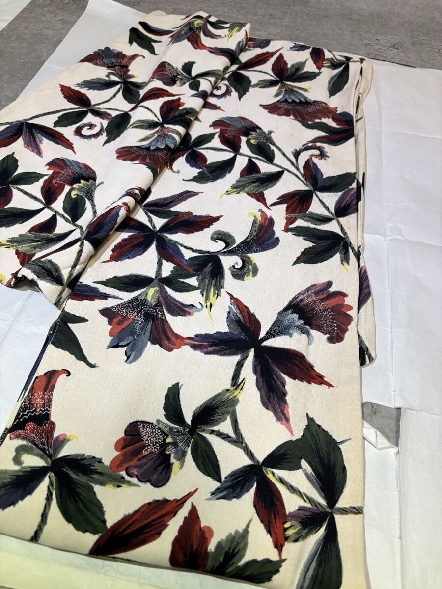 - 小紋 正絹 花 華 草葉 クリーム色 着物 和服 和装 リメイク アンティーク レトロ 染め替え ハンドメイド 生地 衣装