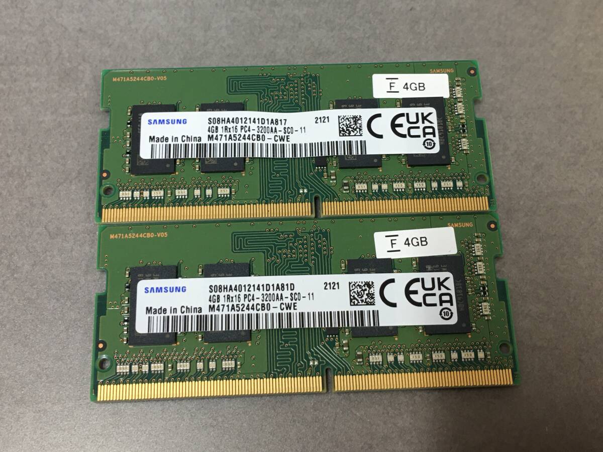 - A3791)SAMSUNG 4GB 1Rx16 PC4-3200AA 中古動作品2枚=8GB
