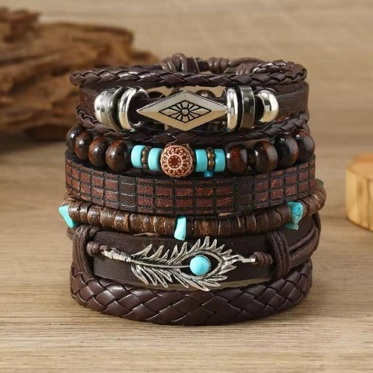 - 【豪華6連セットⅡ】ウエスタンアメカジブレスレット*ターコイズビーズブレスレット