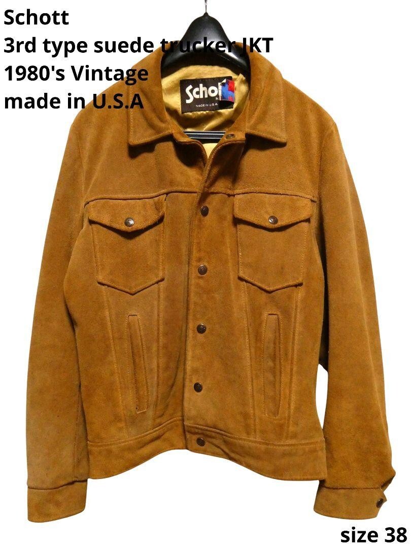 - 80sヴィンテージ!極上美品!ショット3rdタイプウエスタントラッカージャケットスエードGジャン38ライトブラウン茶