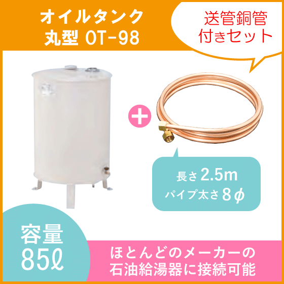 - オイルタンク 灯油タンク 丸型 送油銅管付き 石油給湯器 ボイラー用 OT-98