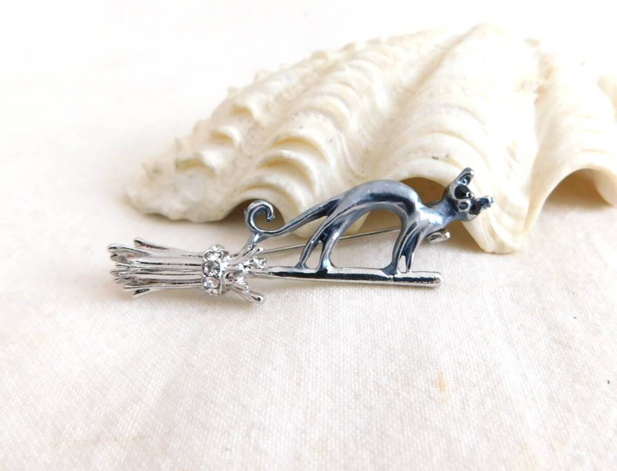 - 【新品】猫のブローチ ネコ 魔法使い ほうきに乗ったネコ ハロウィン