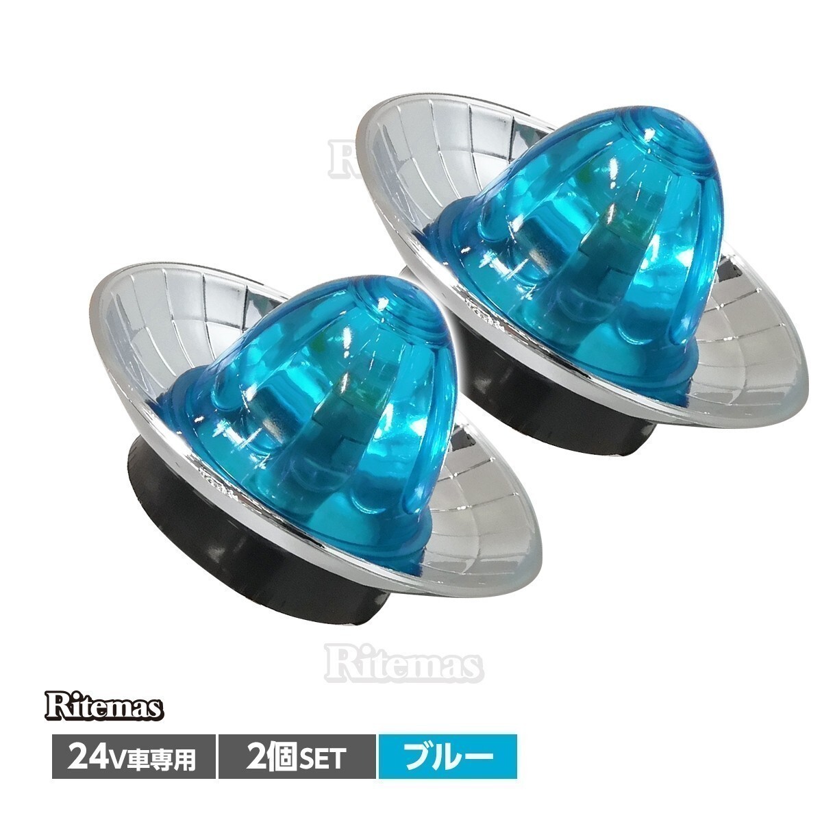 - トラック サイドマーカー メッキリング マーカーランプ ドアサイドマーカー デコトラ 汎用 24 専用 車幅灯 路肩灯 車高灯 ブルー 2個