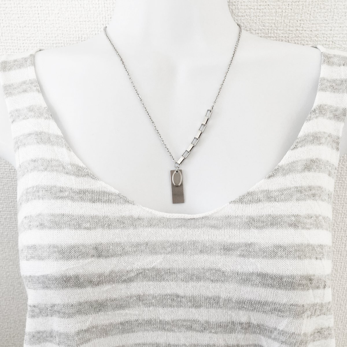 - チェーンがお洒落なステンレスネックレス タグチャーム 50cm ST120