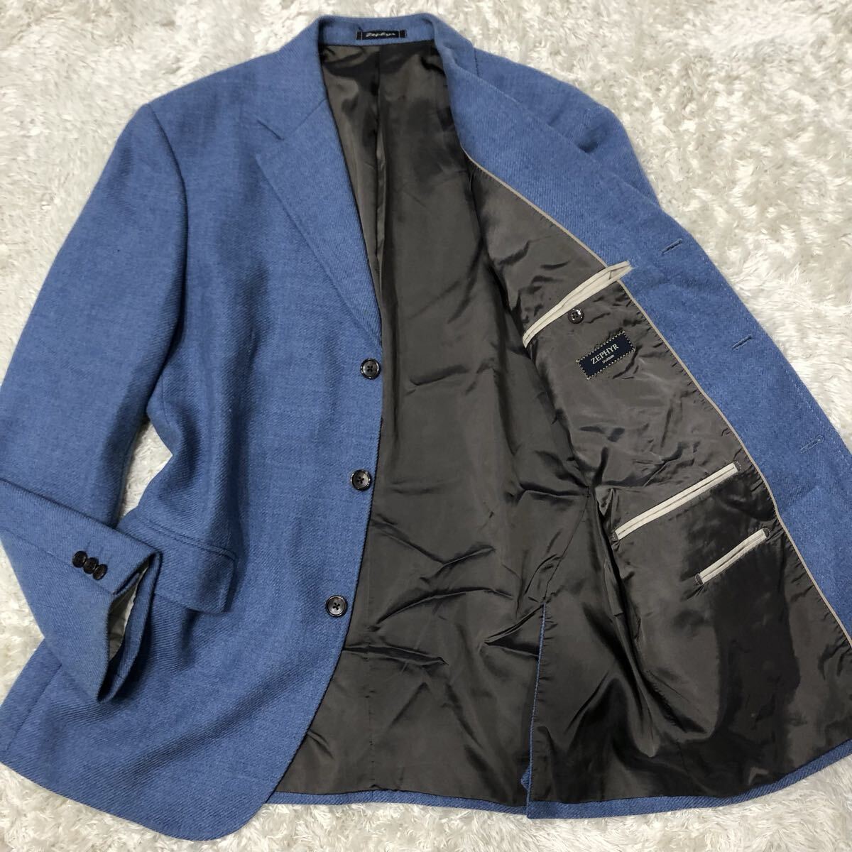 - 超希少XL!ダーバン【極上のツイード】D'URBAN テーラードジャケット ソフトツイード ブルー系 3B 総裏地 ウール100% 秋冬◎ LL相当