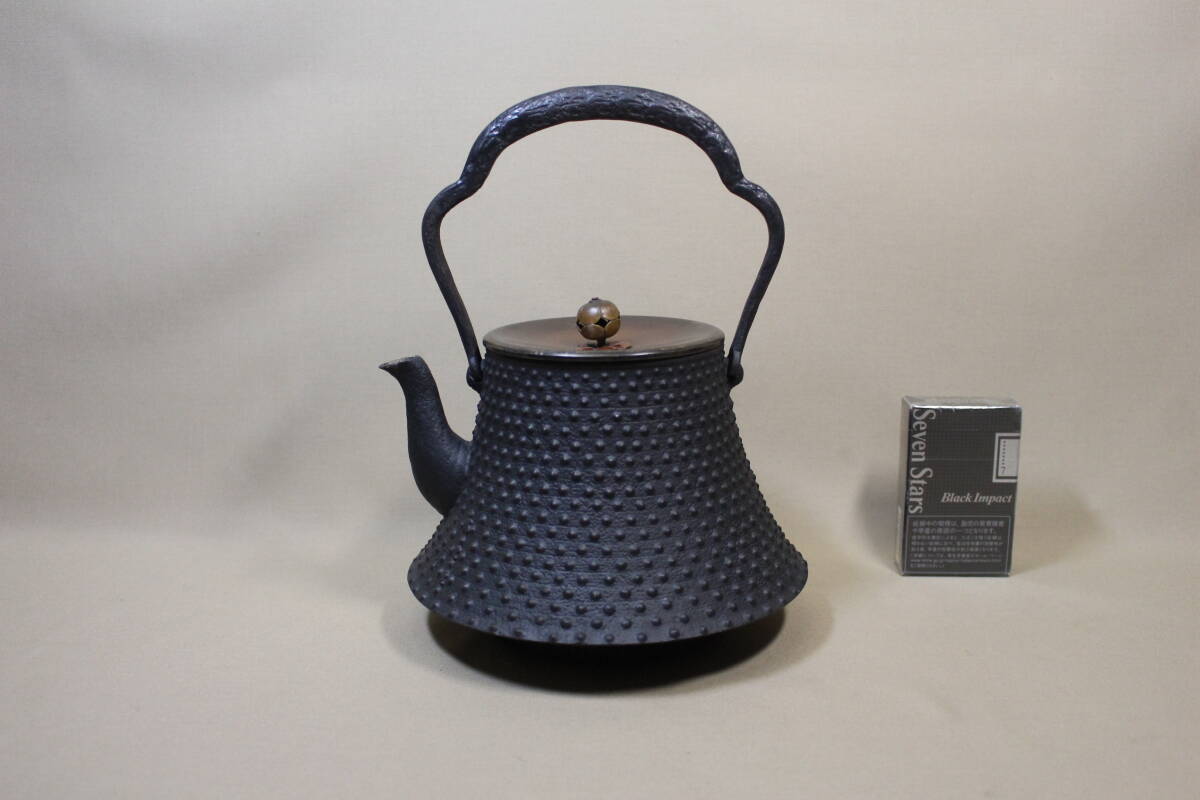 - 【凛】 ☆龍雲堂造 古作 アラレ地文 富士形鉄瓶 胴銘有☆