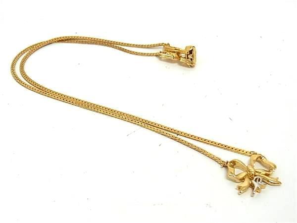 > ■美品■ NINA RICCI ニナリッチ リボン ネックレス ペンダント アクセサリー レディース ゴールド系 DK0335