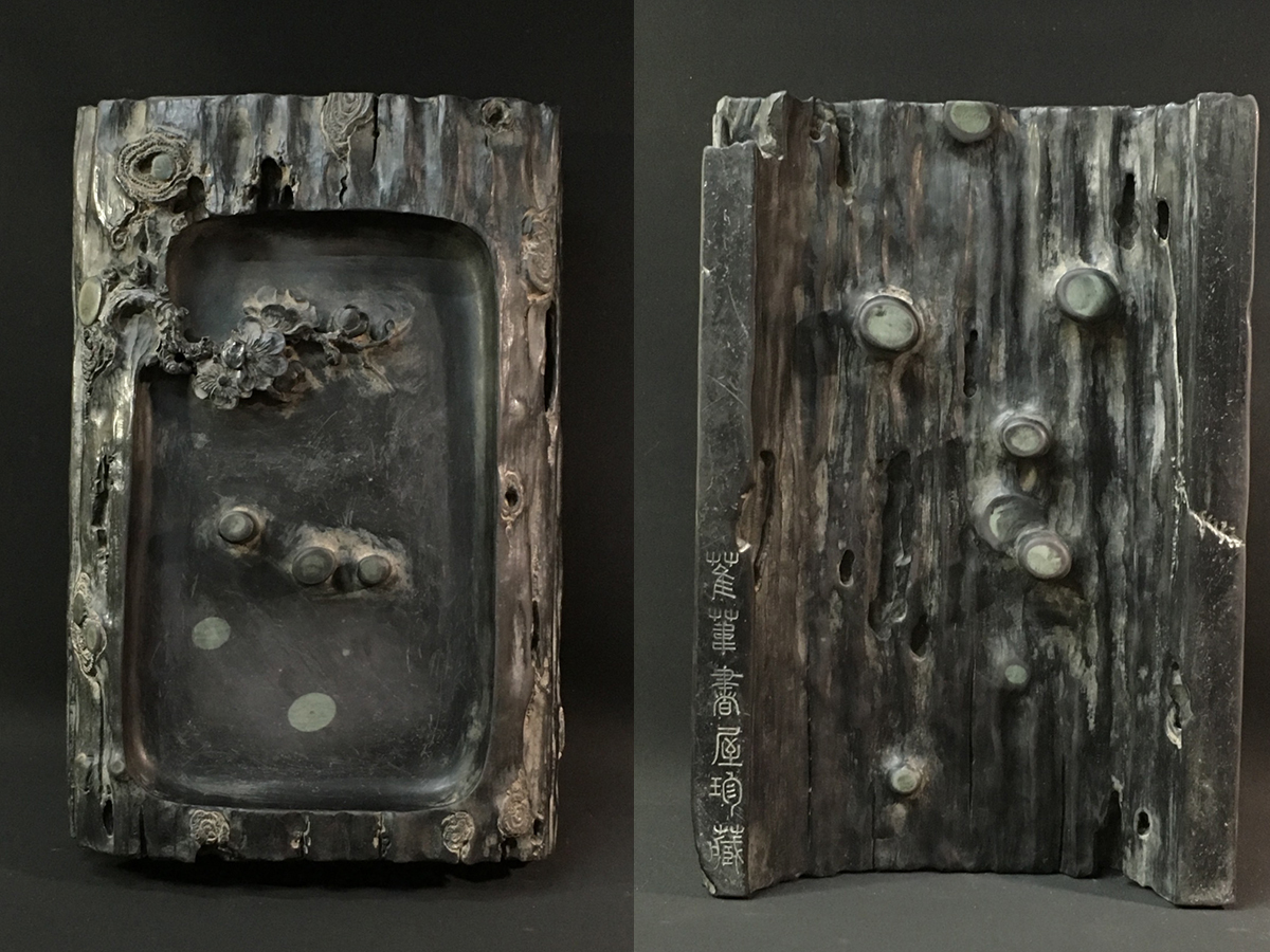 - ▽鴻▽清時代 葦書屋秘蔵(方鼎)銘 端石彫 古木生花紋硯 端渓硯 唐硯 墨寶 書道具 時代物 中国古美術 骨董品