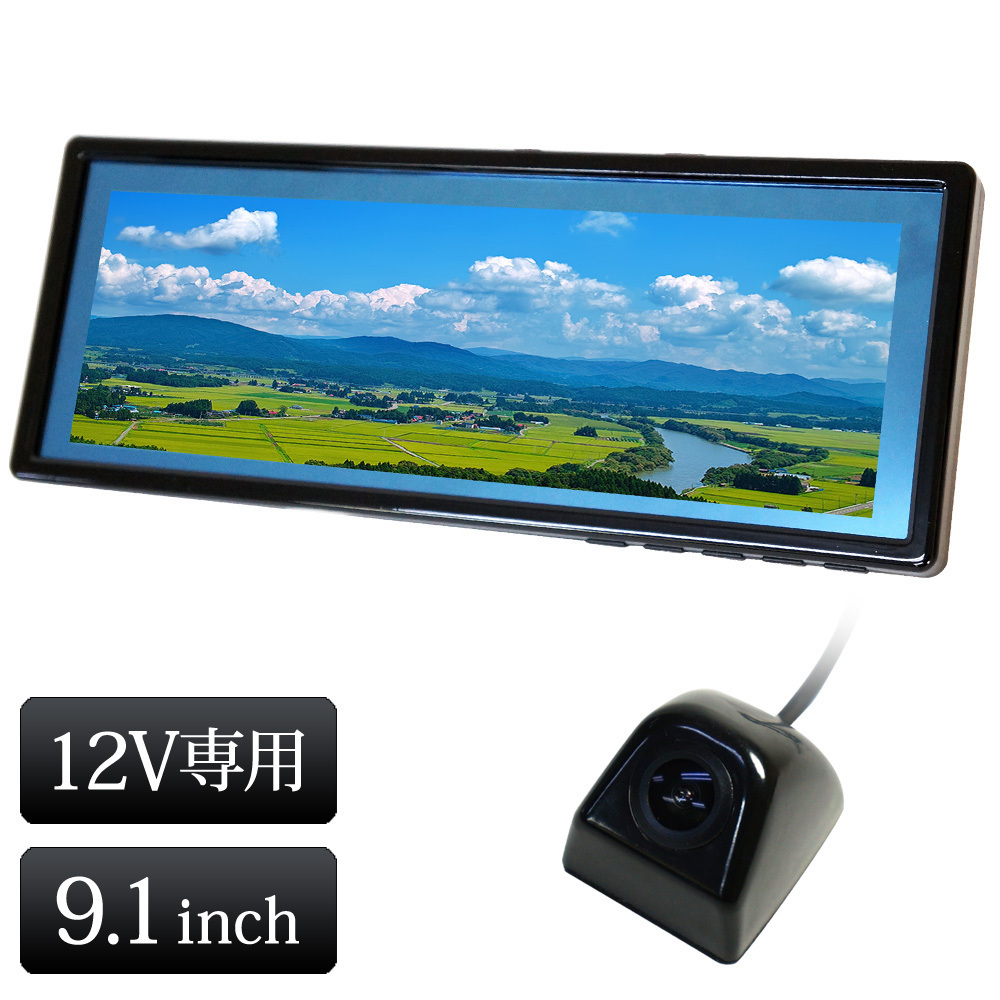 > バックミラーモニター 9.1インチ バックカメラ モニター セット 12V専用 映像2系統 バック連動 遮光 常時通電 CMOS正像鏡像 B391C891B