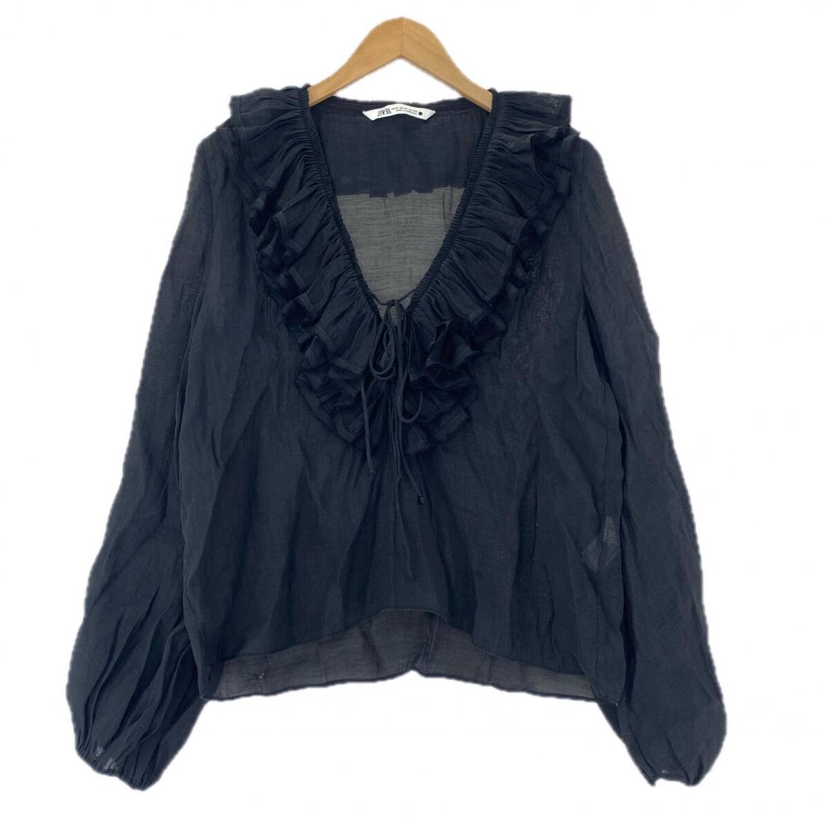 - ZARA ザラ フリルカラー シアー ブラウス sizeEUR M/ブラック ゆうパケットOK