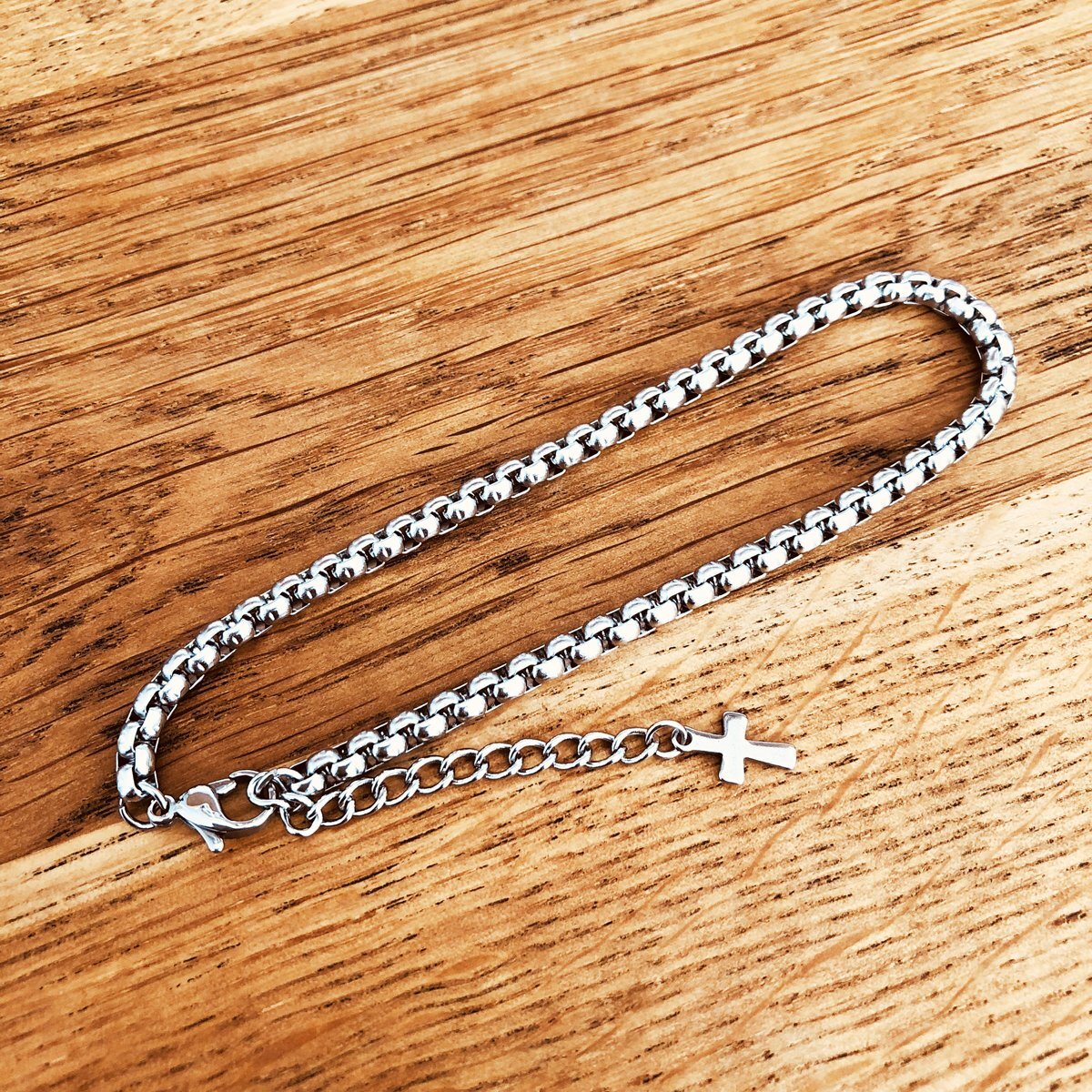 - ステンレスチェーンアンクレット 4mm幅 甲丸ベネチアンチェーン 30cm(26cm+4cmアジャスター)