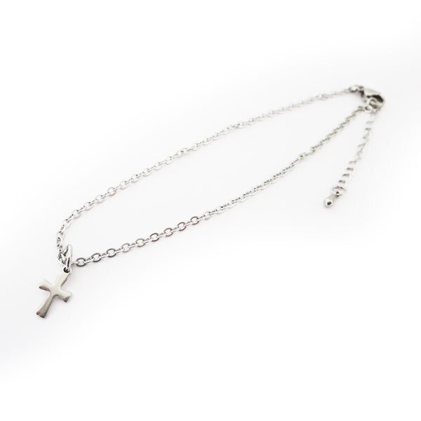 - ステンレスチェーンアンクレット 全長約 26cm(22cm+4cmアジャスター)ミニクロス付き FN107