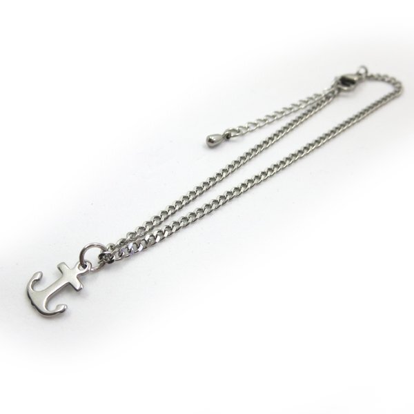 - ステンレスチェーンアンクレット喜平2面2.2mm ミニイカリチャーム付き 25cm(21cm+4cmアジャスター)