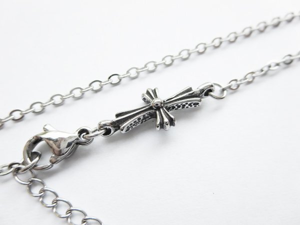 - ステンレスチェーン クロスアンクレット 30cm(26+4cmアジャスター) 2.4mm幅平小豆 FN173