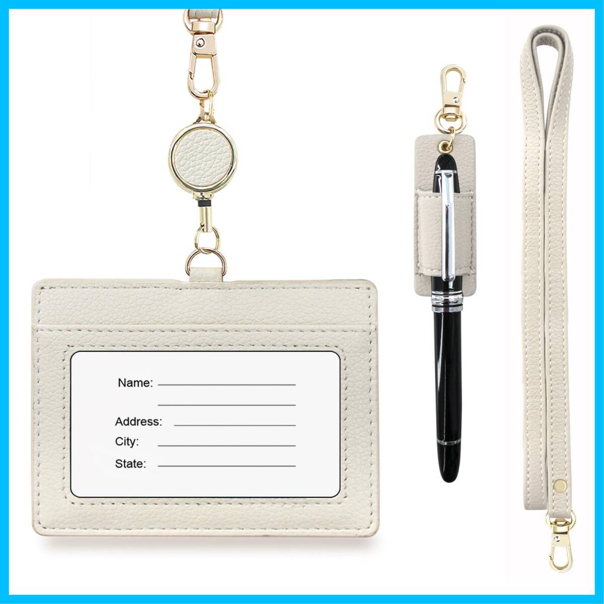 - 通学 通勤 IDカードホルダー ペンホルダー付き メンズ レディース カードケース 名刺入れ 革 両面 2枚 社員証ケース ホワイ
