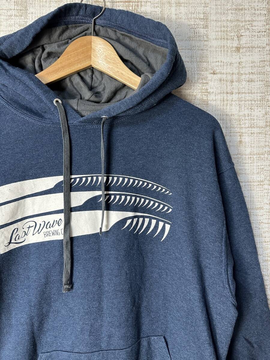 - ☆US古着 FRUIT OF THE LOOM フルーツオブザルーム フード パーカ プリント スウェット トレーナー 裏起毛 ネイビー紺【M】 ◆5276◆