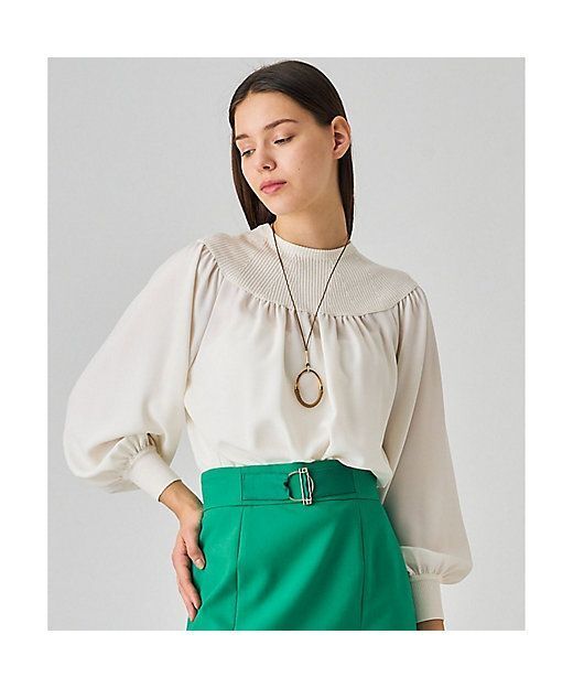> cj02 ANAYI 23AW ウールクルーネックドッキング プルオーバー シャツ ブラウス ニット アナイ 定価35,200円