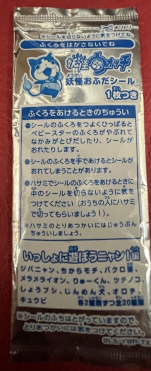 - 妖怪おふだシール「妖怪ウォッチ」のキャラクターが描かれたシールが1枚入っています。シールは全20種類、ジバニャン、オロチ、キュウビ