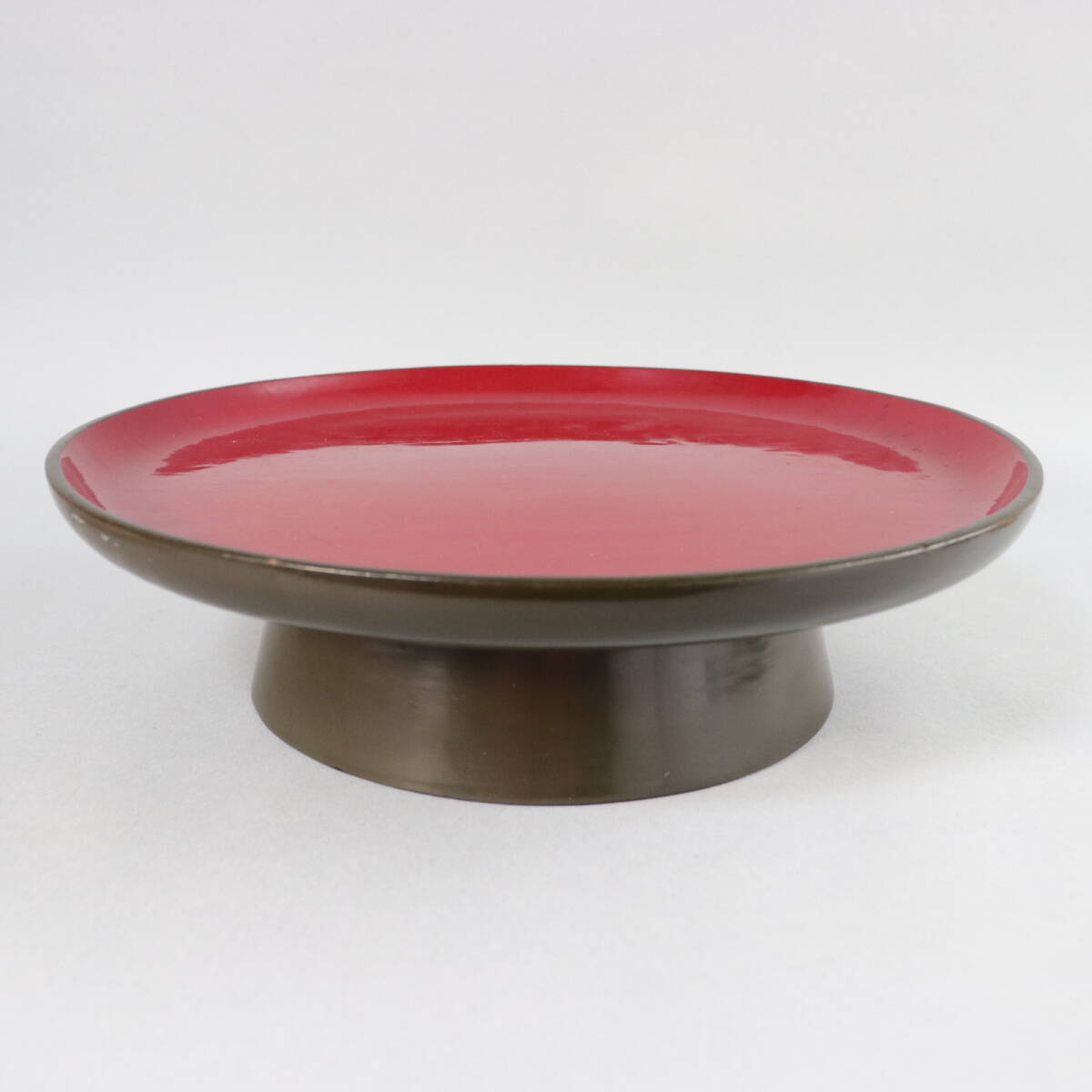 - D 高台付 丸盆 / 台付大盆 御膳 朱塗 緑漆 木製漆器 根来塗 供物台 菓子器 飾台 茶道具 民藝 古民芸 C10