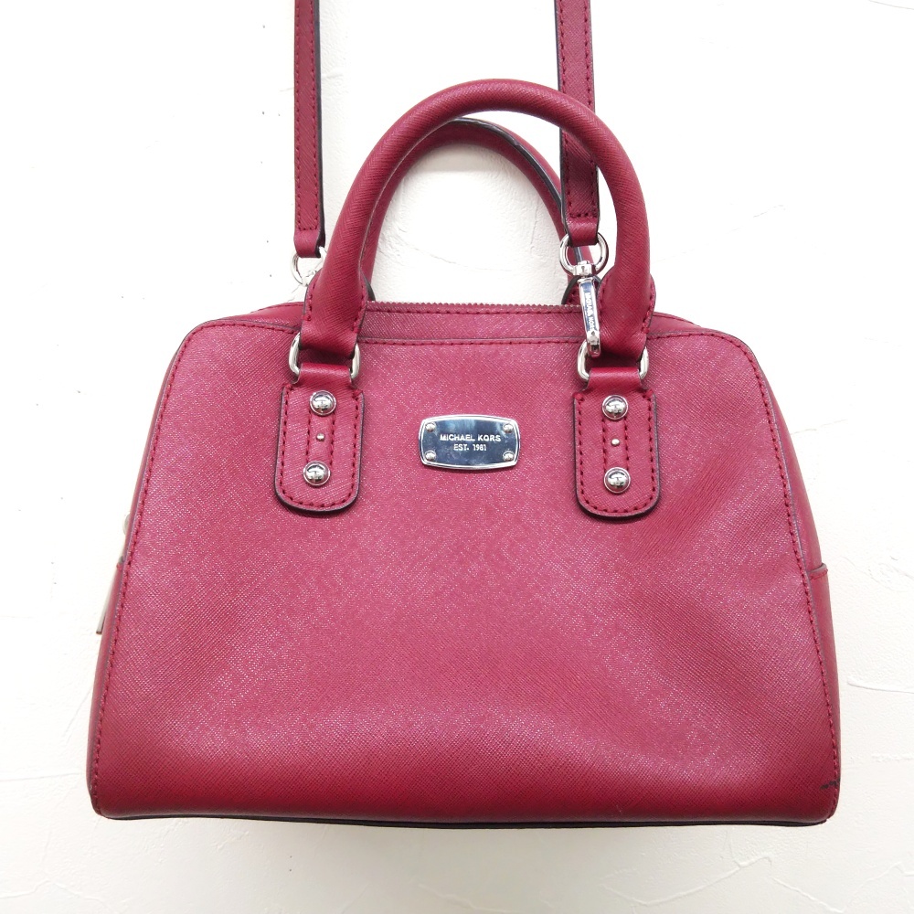 - B25-2262 MICALE KORS マイケルコース 35S3SSAS1L 2WAYバッグ レッド レザー レディース ショルダーストラップ付き