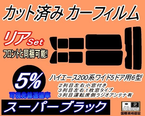 > カーフィルム スーパーブラック カット済み リアセット ハイエース 210系 5ドア ワイド itype (5%) スモーク KDR KDH TRH 211