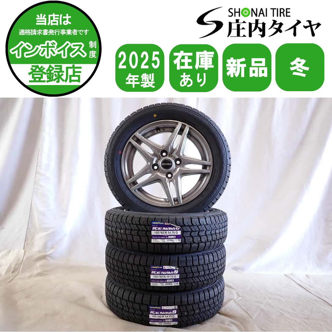 - 冬 新品 2025年製 4本SET 会社宛 送料無料 155/65R14×4.5J 75Q グッドイヤー アイスナビ 8 アルミ デイズ N-BOX ワゴンR タント NO,D6785