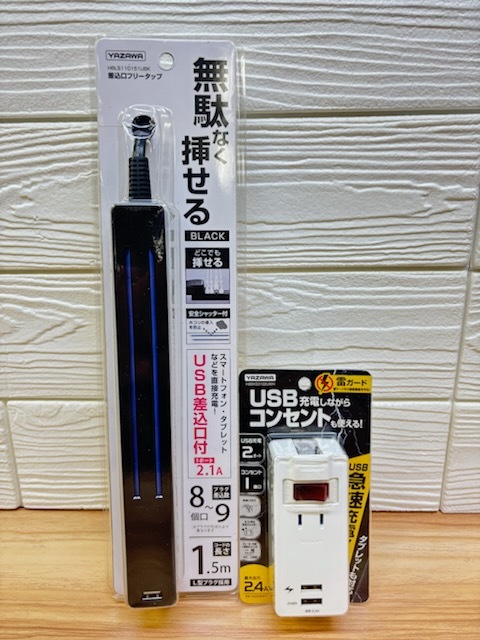 - A871 YAZAWA 急速充電2.4A USBが2ポート挿せるUSBアダプタ&USB 1ポート付 差込口フリータップ ブラック 8~9個口 1.5m