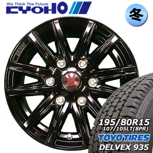 - 【2024-2025年製 トーヨー DELVEX 935 195/80R15】【KYOHO SEIN SS8 ソリッドブラック 15x6.0J In33 6H PCD139.7】新品 タイヤ&ホイール4本