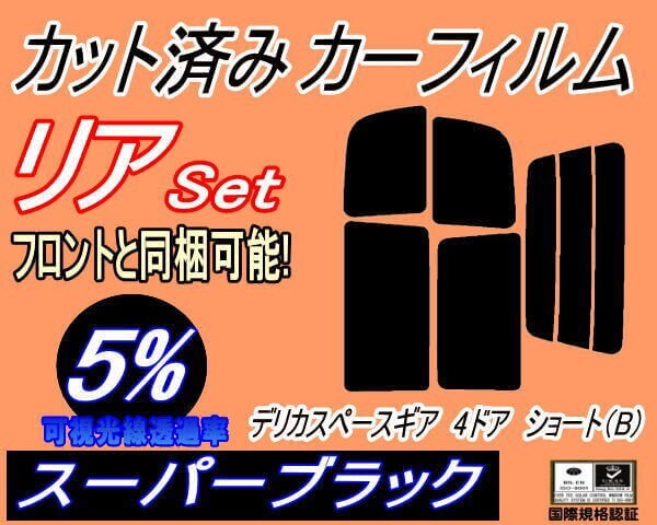 - カーフィルム スーパーブラック カット済み リアセット デリカスペースギア 4ドア ショート B (s) スモーク PA3V PA4W PA5W PA5V PE8W