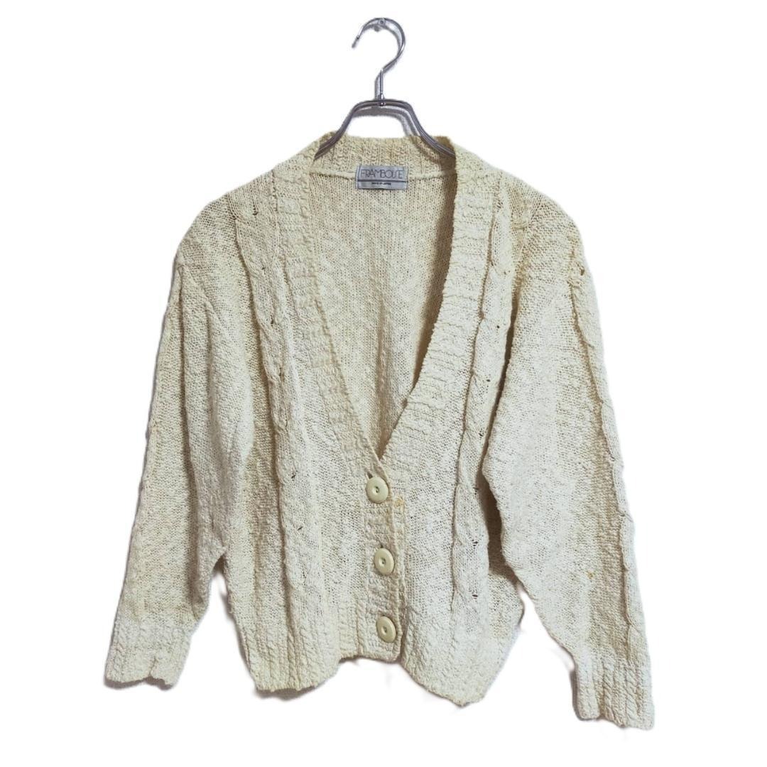 - フランボアゼ カーディガン ベージュ L ケーブル編み Vネック ニット 春秋