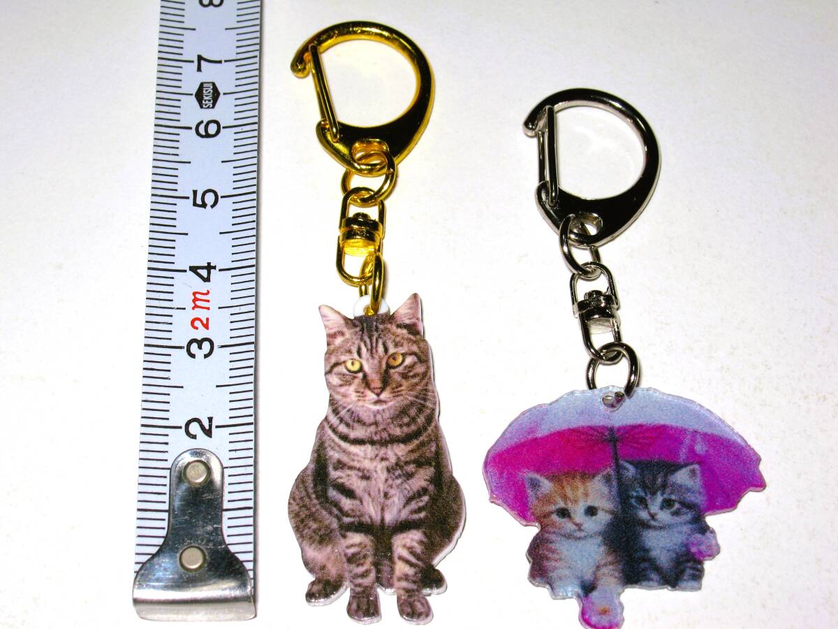 - 【にゃんこ アクリルキーホルダー 2個 C】ねこ 猫 子猫 傘 可愛い かわいい アクセサリー レディース メンズ バッグチャーム キーリング
