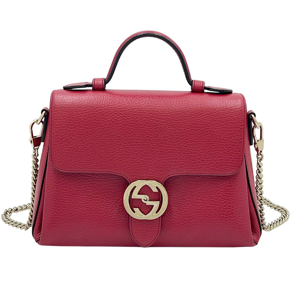 > グッチ ショルダーバッグ GUCCI 510302 インターロッキングG 2WAY バッグ レザー レッド 赤 チェーンバッグ ハンドバッグ レディース