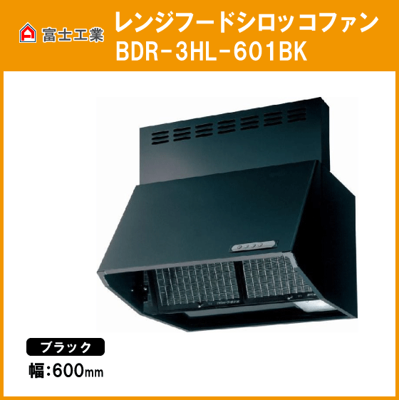 > レンジフード シロッコファン(本体カラー:ブラック) 幅600mm 高さ600mm BDR-3HL-601BK 富士工業 FUJIOH
