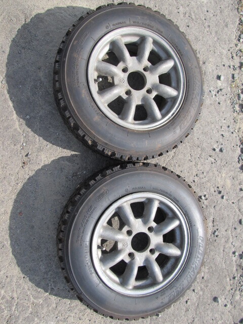 > 旧車に!RS WATANABEエイトスポーク RSワタナベ 13-5.5j CV スパイクタイヤYOKOHAMA FLEXPAN 28Q 155/8013 現状品。