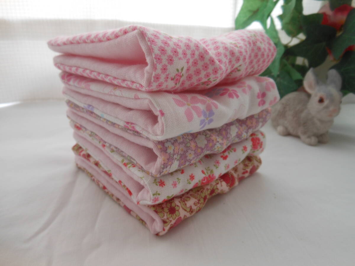 - ふわふわガーゼハンカチ 花柄5枚 ① 出産 バザー プチギフト