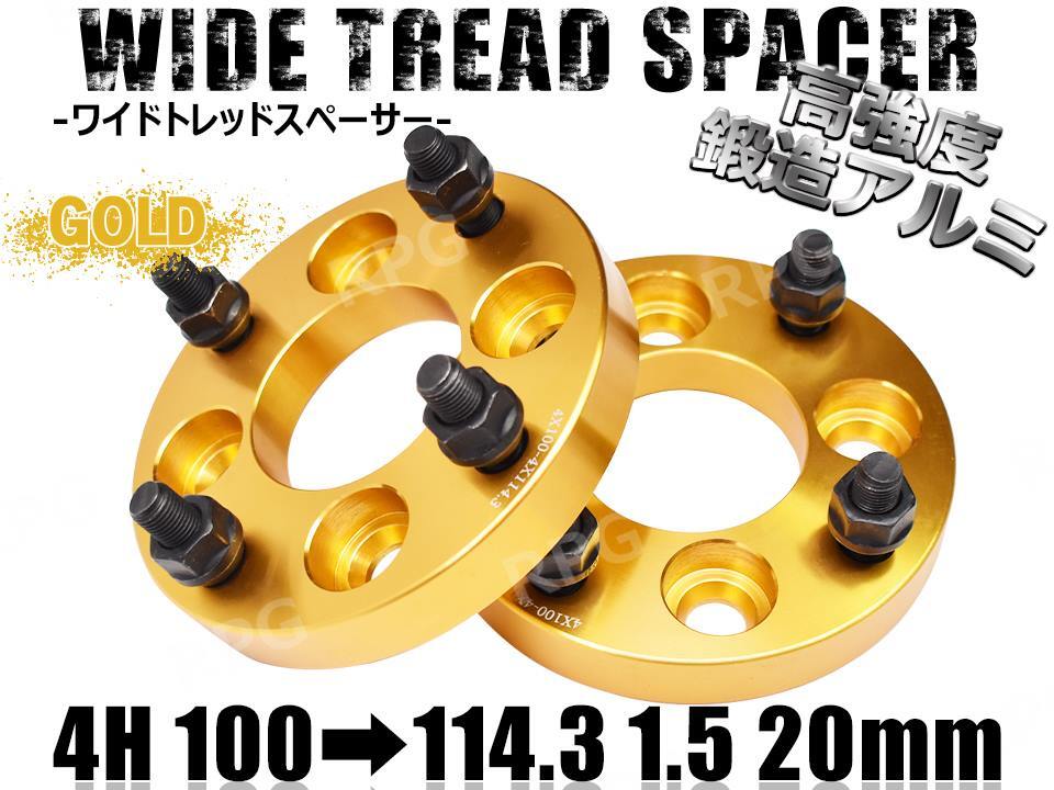 - PCD100114.3変換 ワイドトレッドスペーサー 2枚組 4H 1.5 20mm ゴールド