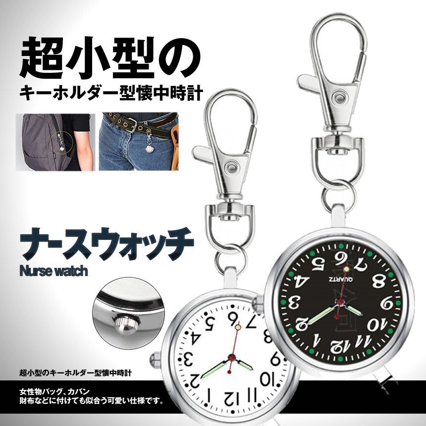 - ナースウォッチ ホワイト 時計 懐中時計 逆さ時計 キーウォッチ キーホルダー ナスカン シンプル リュック バッグ ポケット NASWATCH-WH