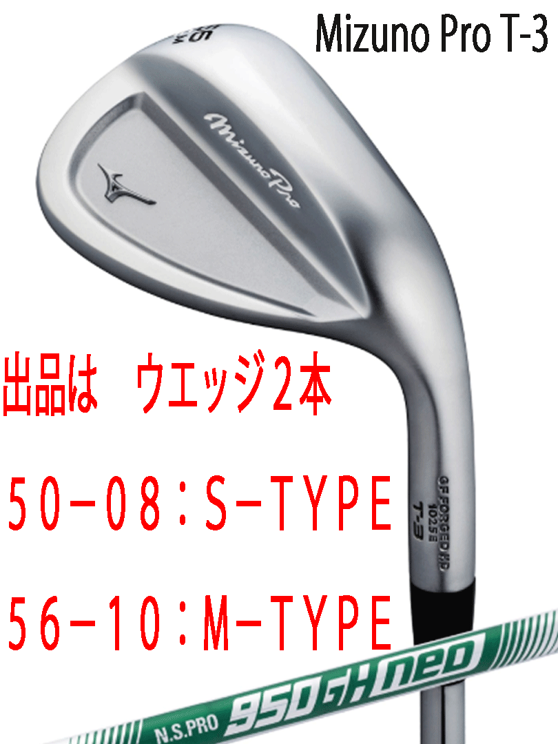 > 新品■2025.7■ミズノ■MIZUNO PRO T-3 WEDGE■ホワイトサテン■ウエッジ2本■50-08:S-TYPE/56-10:M-TYPE■NS PRO950GH neo スチール■S■