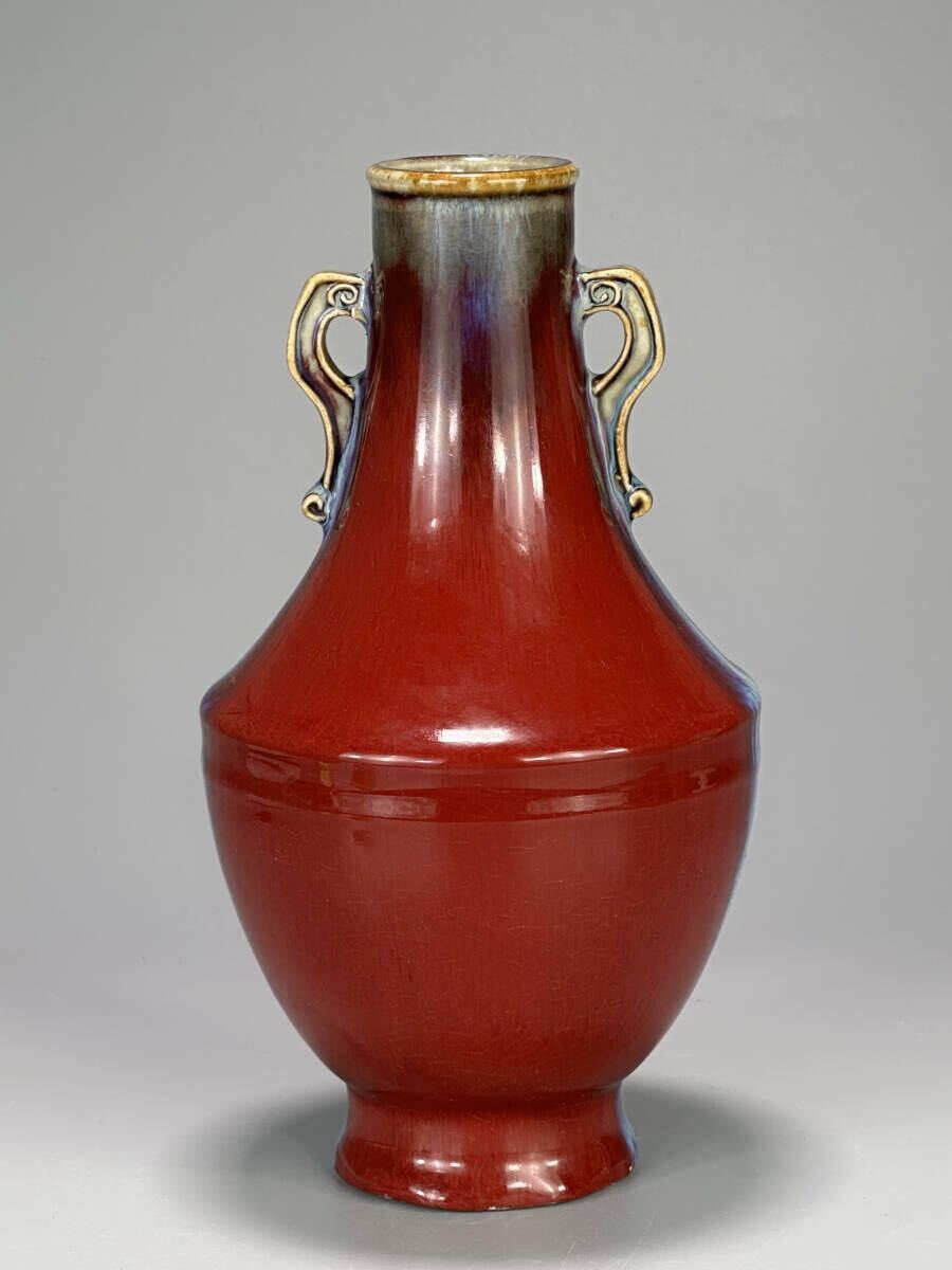 - UO03-11 中国美術 大清乾隆年製 窯変釉 如意耳賞瓶 花瓶 花器 時代 唐物