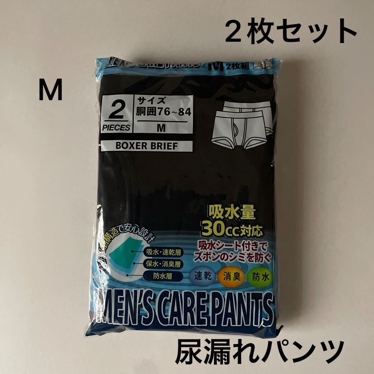 - 2枚組 M 尿漏れパンツ 失禁パンツ 尿もれパンツ ボクサーブリーフ メンズ 男性用 紳士 尿染み ちょい漏れ ブリーフ 30cc 吸水 ブラック